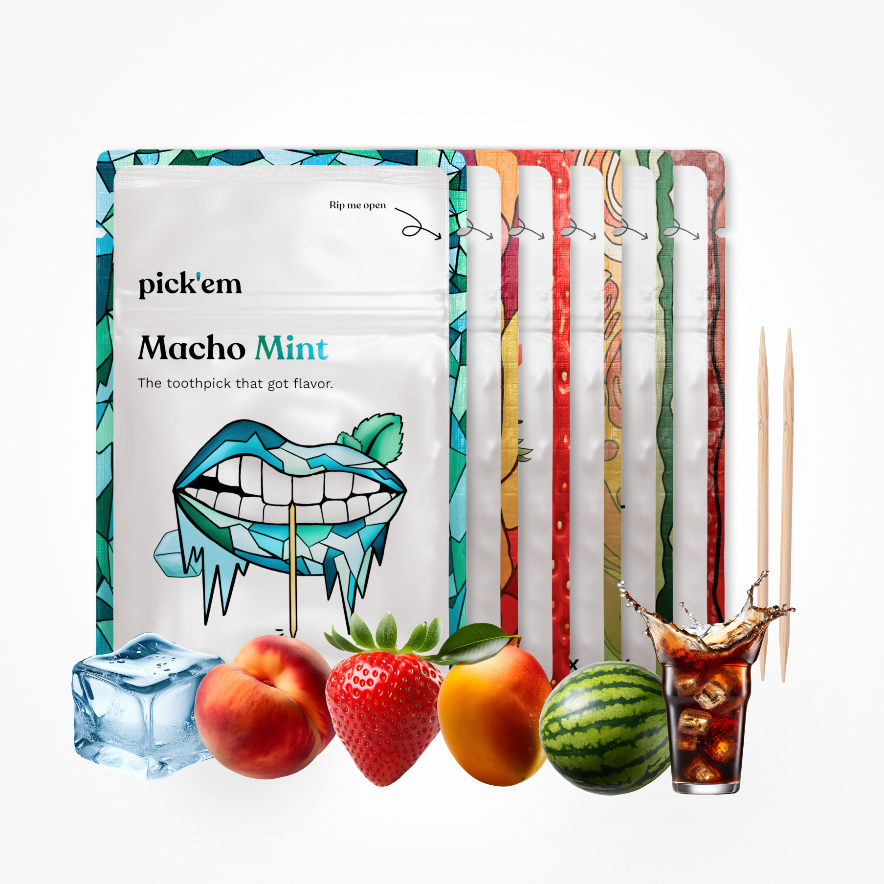 Strawberry, Peach, Cola, Mango, Mint, Watermelon flavored toothpicks